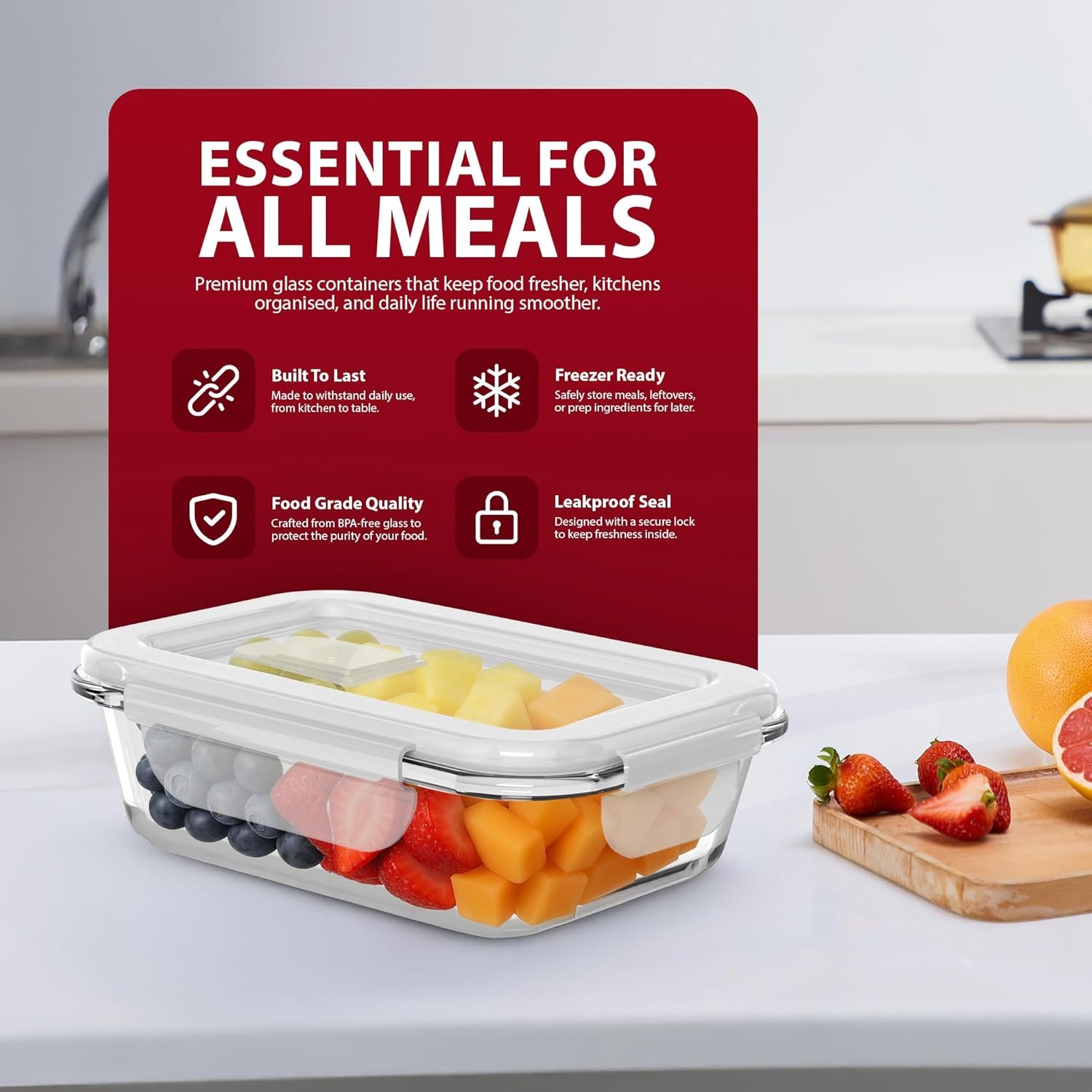 • IDEAL FOR MEAL PREP, BATCH COOKING AND MORE – Whether you’re storing leftovers, organising your weekly meals or preparing lunches for work, these glass meal prep containers provide reliable, everyday performance. A must-have solution for anyone looking to eat better and stay organised.