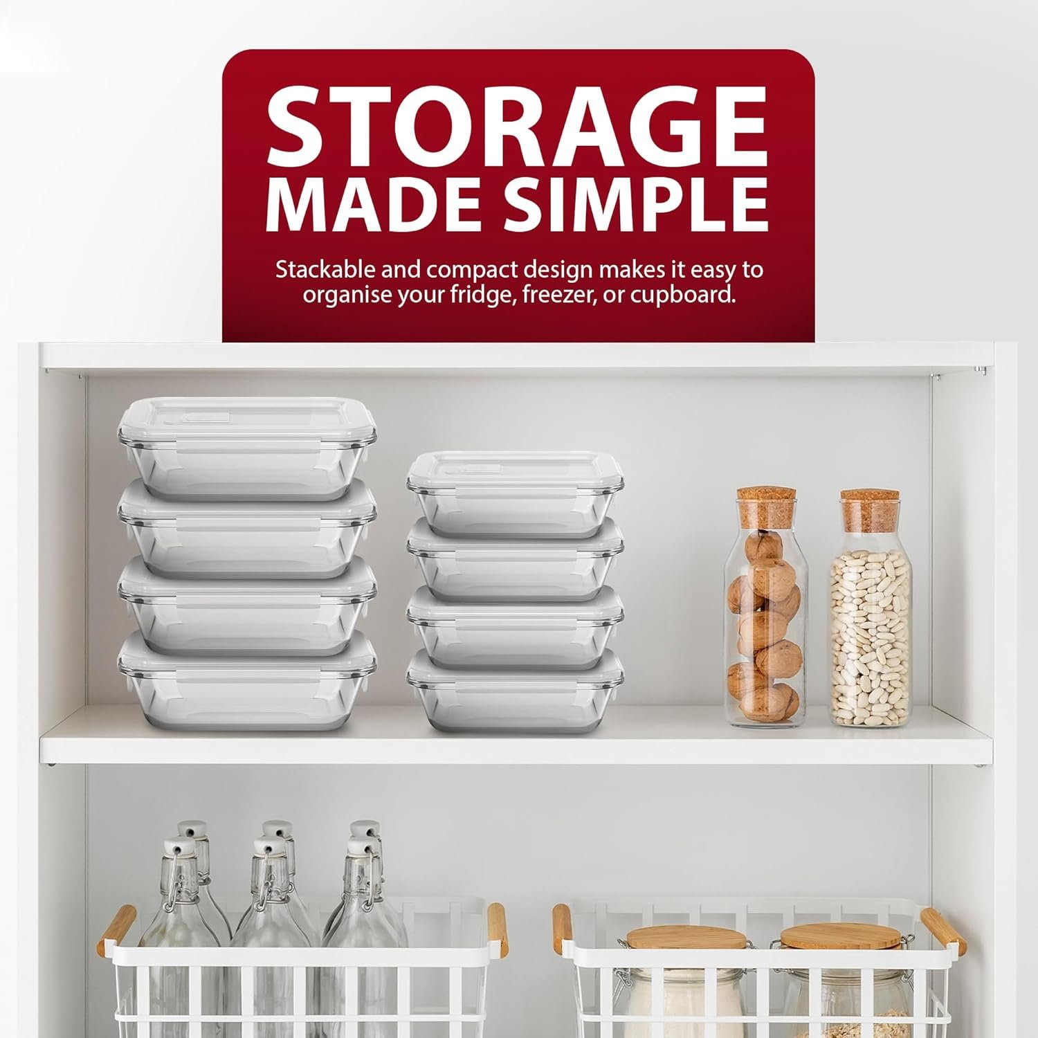 • STACKABLE DESIGN SAVES KITCHEN SPACE – These meal prep glass containers are designed to stack neatly in your fridge, cupboard, or drawer, helping to keep your kitchen organised and clutter-free. The transparent glass also makes it easy to identify what’s inside at a glance.