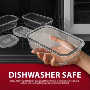 • DURABLE AND HEAT-RESISTANT BOROSILICATE GLASS – Made from high-quality borosilicate glass, these containers are tough, long-lasting, and resistant to thermal shock. Use them confidently in the oven (without lids), microwave, dishwasher, or freezer for stress-free convenience.