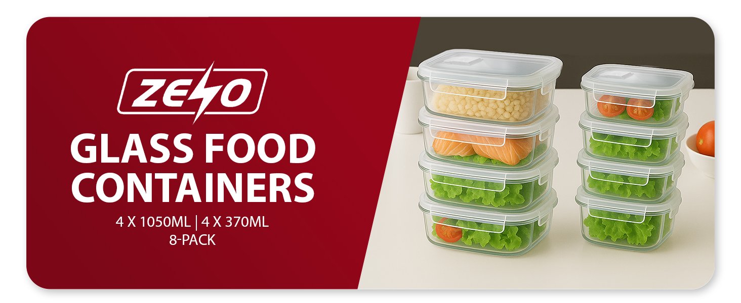Be the first to review “ZENO Glass Containers with Lids 8 Pack | Meal Prep Containers | Glass Food Container with Lid, Airtight Seal, Leakproof Lid | Dishwasher Safe | Freezer & Microwave Safe | 4 X 1050ml + 4 X 370ml”